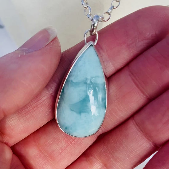 Larimar is said to be a healing stone, offering strength, stress & anxiety relief, as well as aiding inner wisdom, communication, emotional honesty and creating healthy boundaries.