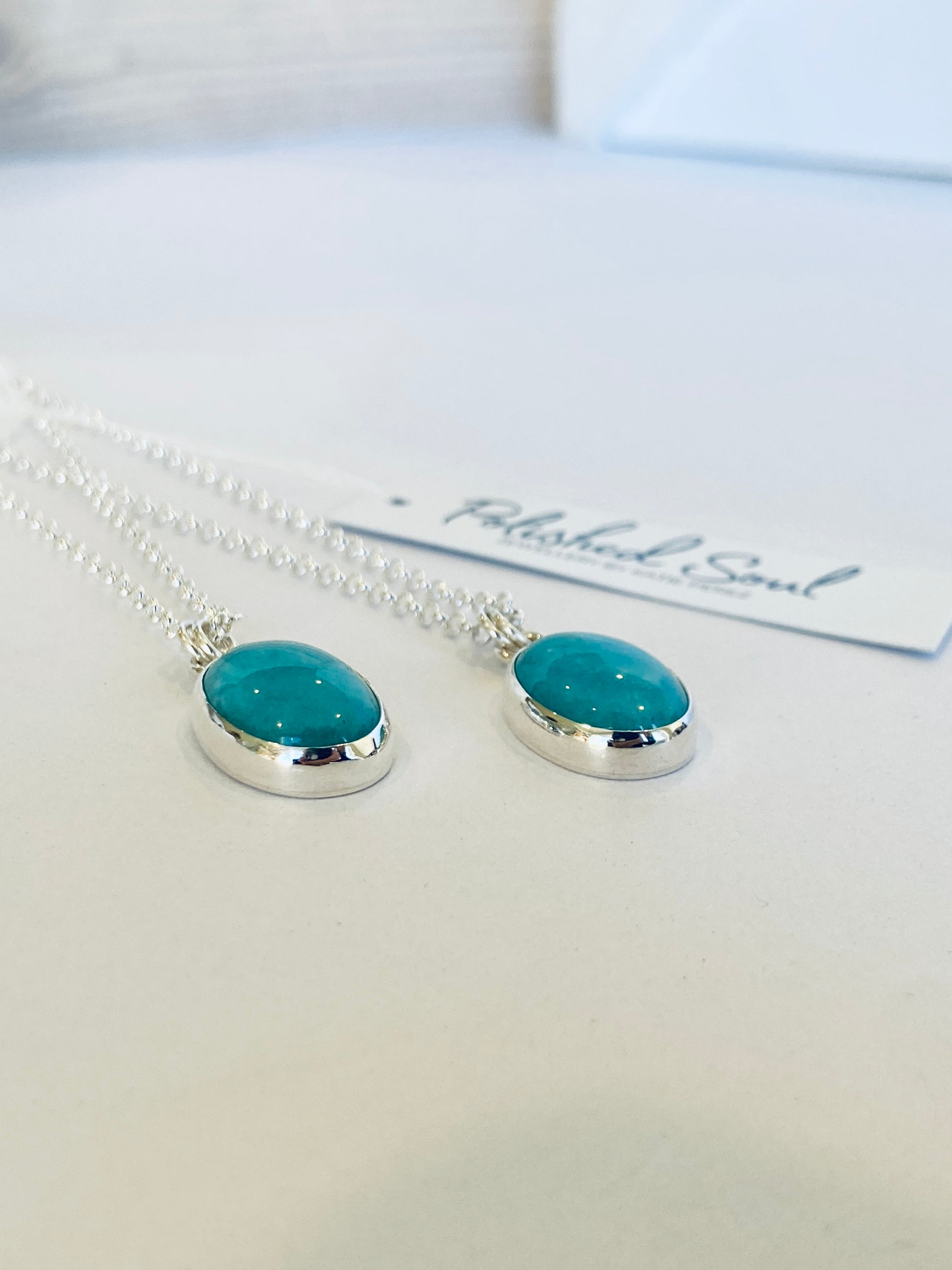The Ocean Drop necklace features a gorgeous amazonite stone.