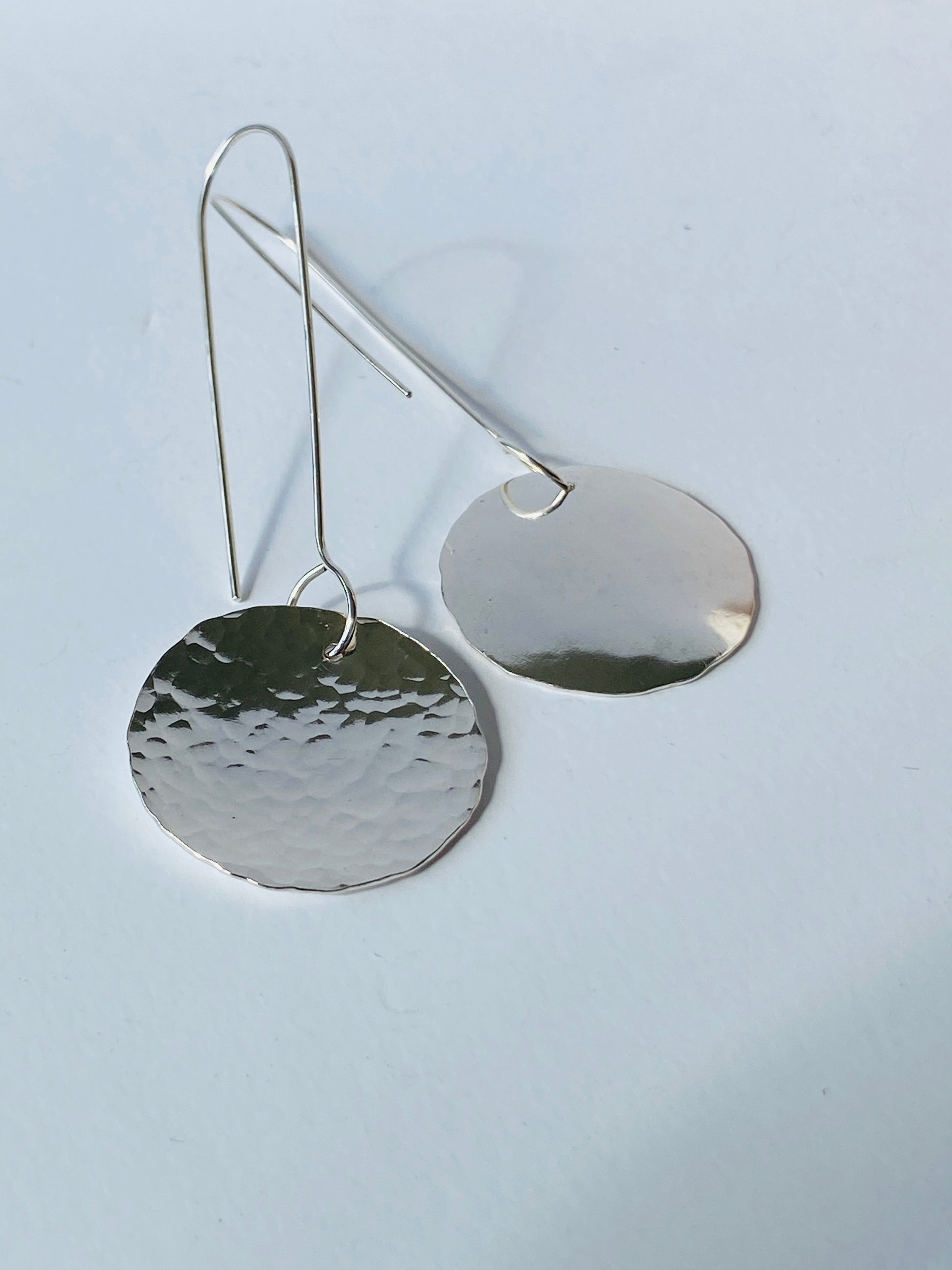 - 100% Sterling Silver thin hammered circle dangle earrings.